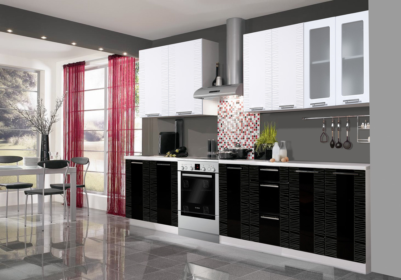 Кухня Оля Соломка боковая Белый/Черный Артём-Мебель