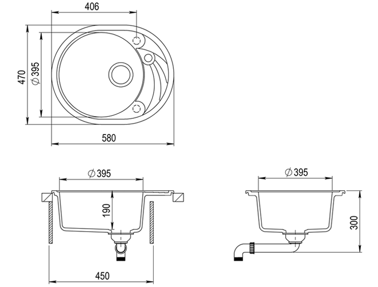 | Глубина чаши (мм) | 190 |