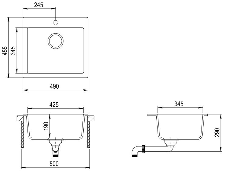 | Длина мойки (мм) | 490 |